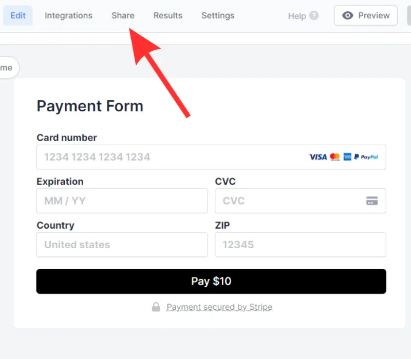 In your Fillout account, select the form you’d like to connect to your Motion.io client portal and click “Share.”