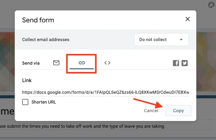 Once your selections are confirmed, copy the generated Google Form link to your clipboard.