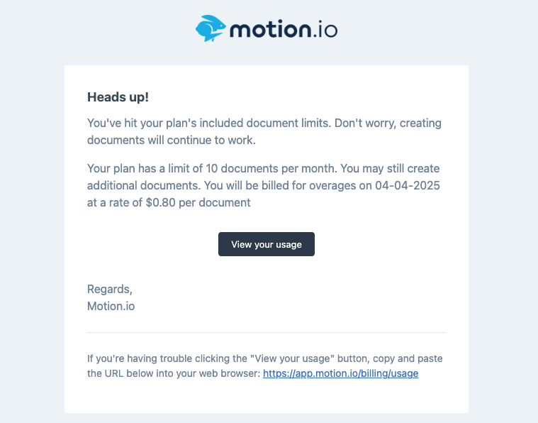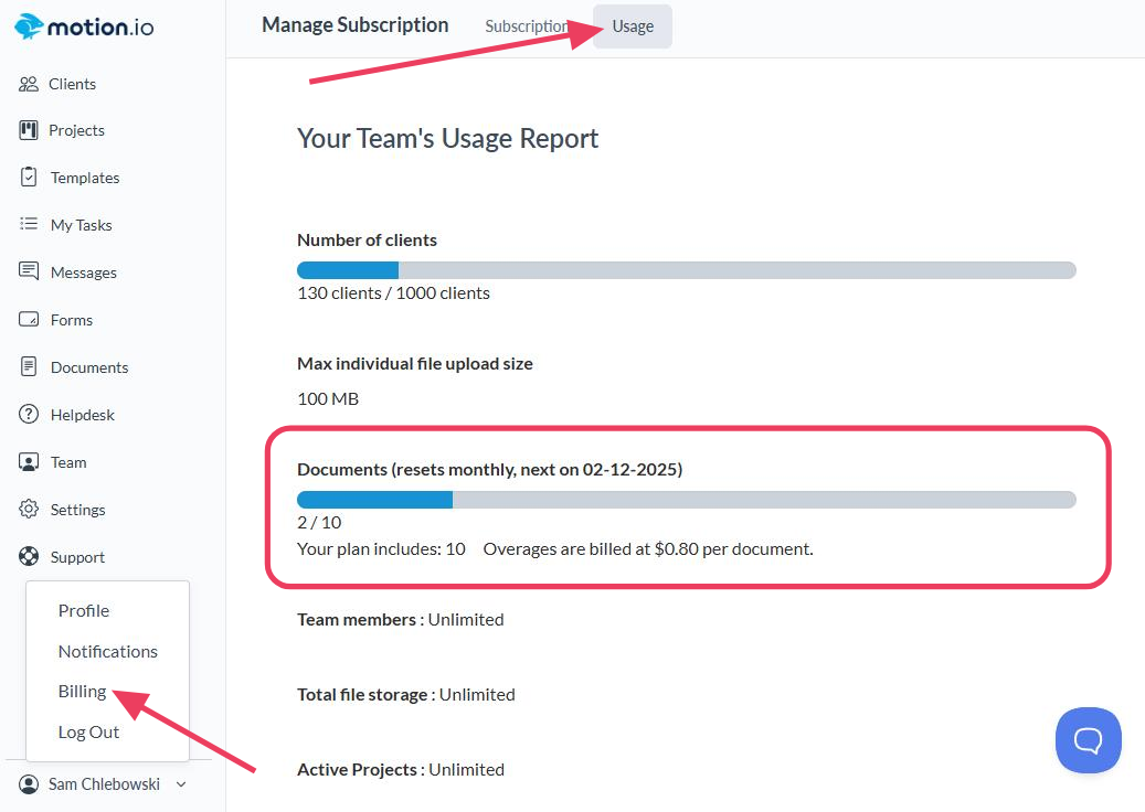 Each of Motion.io's subscription plans contains a limit on the number of Contracts you can send per month. This article will explain how to check how many Contracts you've used in a month and what types of activities count towards this limit.