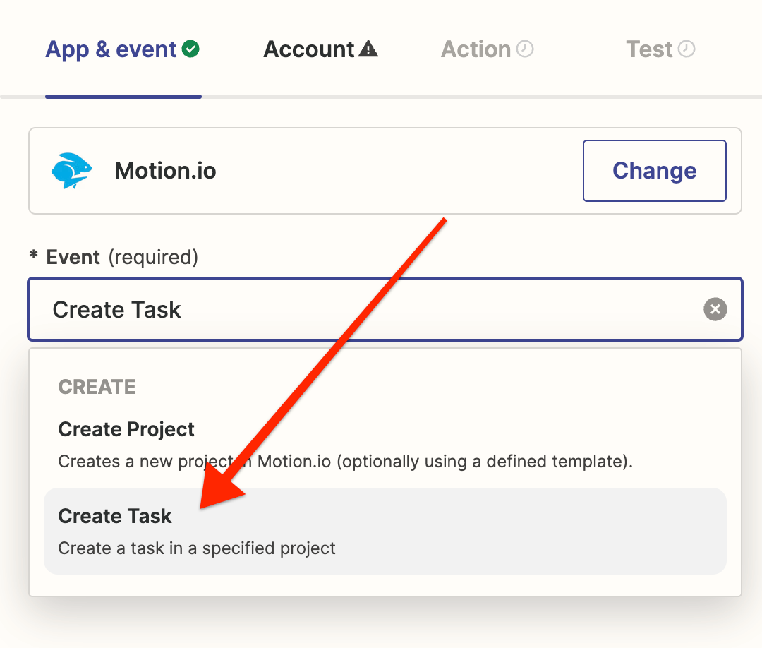 - Task Title & Description: To enable this Zap to create tasks in various Motion.io projects and portals, the Task Title and Description for this task will remain generic.