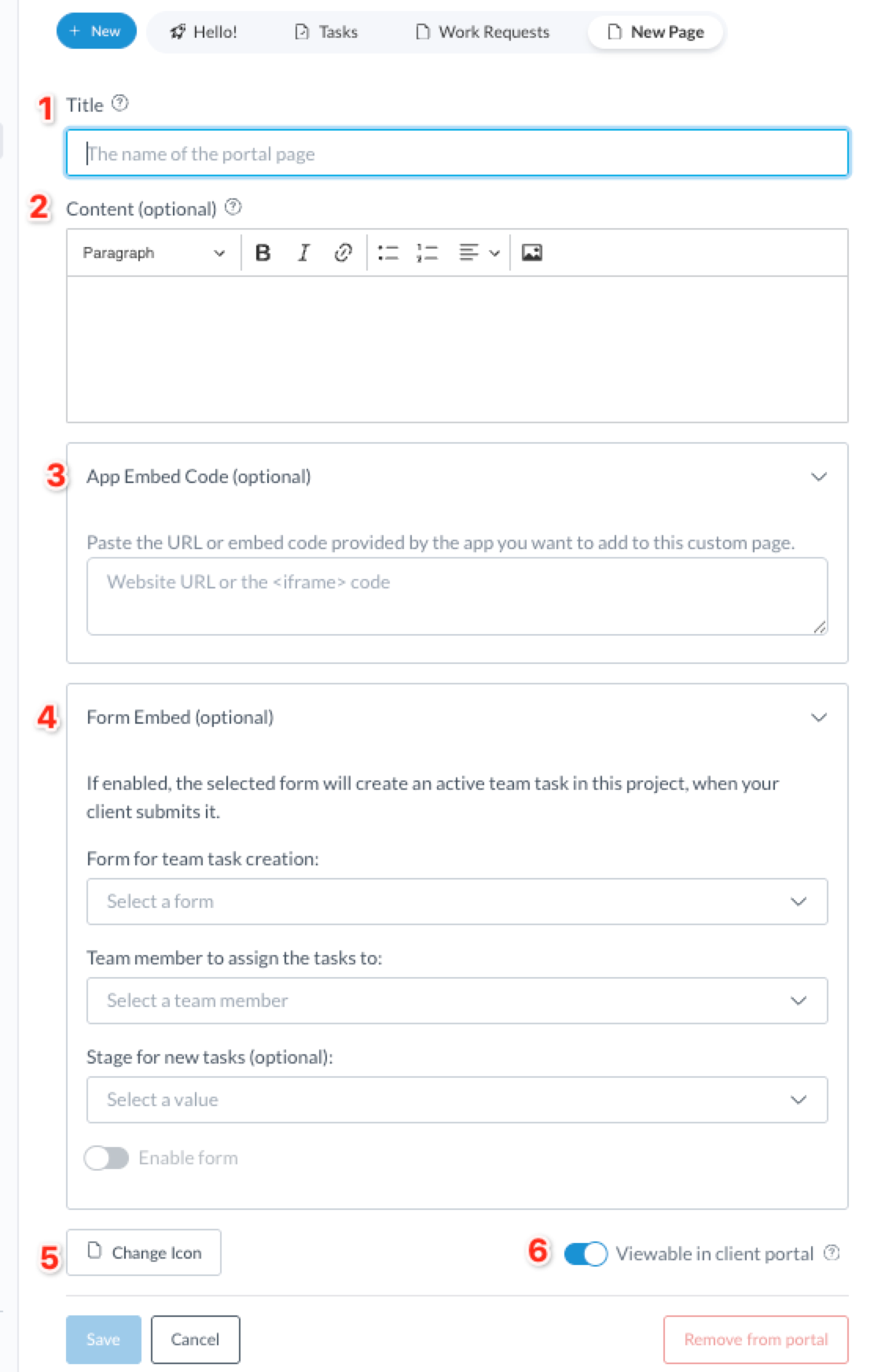 4. Form Embed: The "Form Embed" is a great way to gather client feedback. When a form is submitted, it automatically creates a task in the project, reminding your team to follow up.