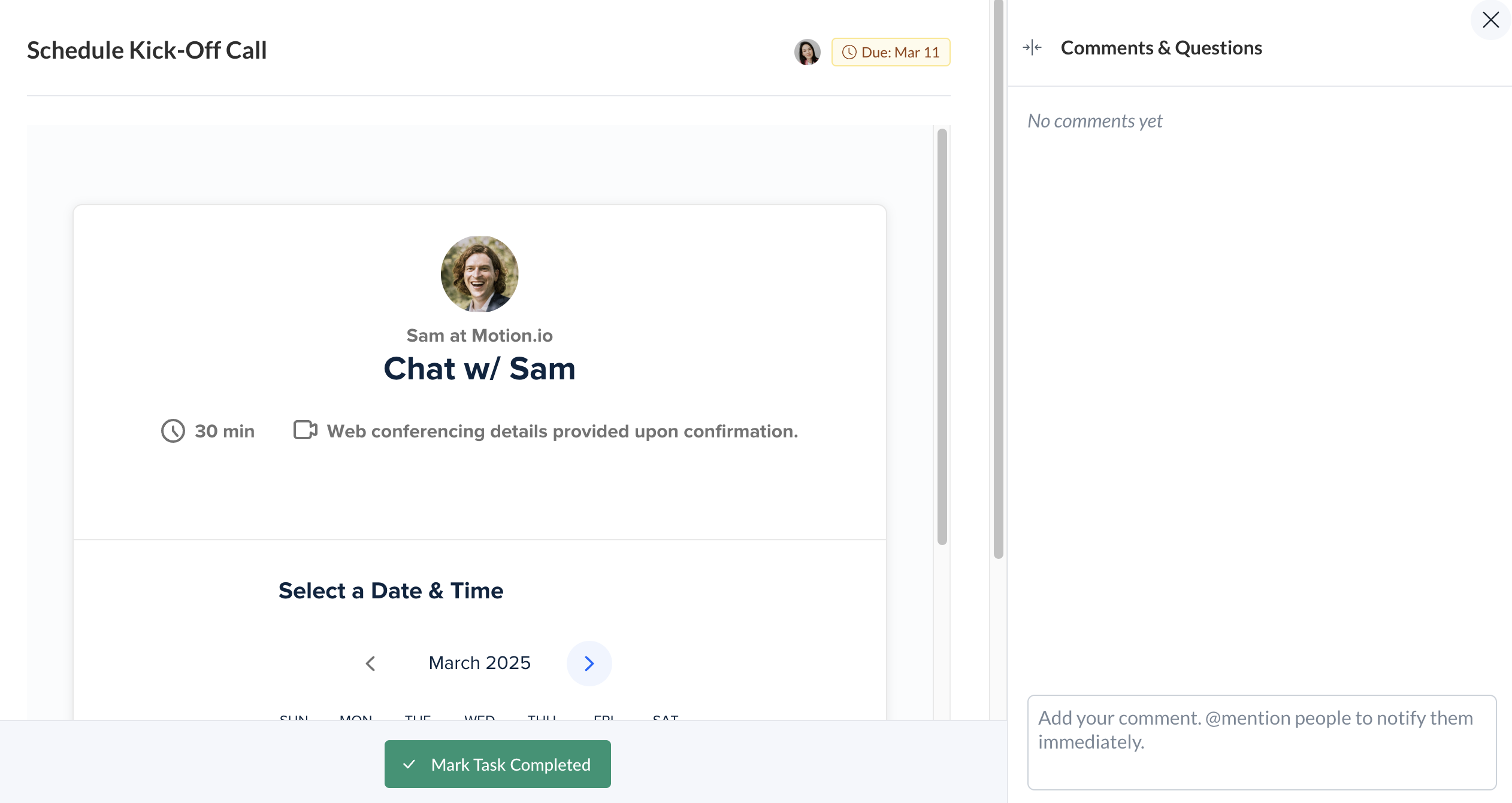 This link will display directly within the task for your client, giving them easy access without needing to open new tabs or leave Motion.io.