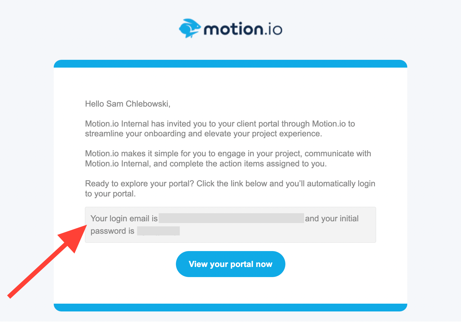 - New Clients Added via a Project: If a client is added to Motion.io directly from a Project’s Users page or from a Task, they’ll receive an invitation email that includes their login email and a temporary password.