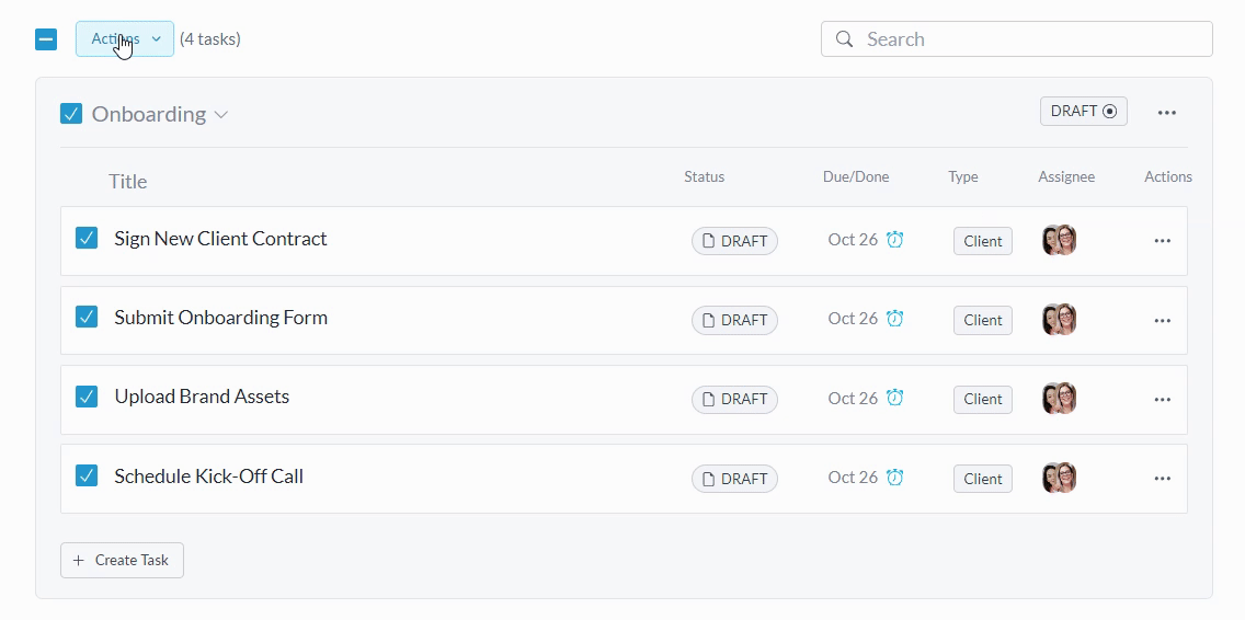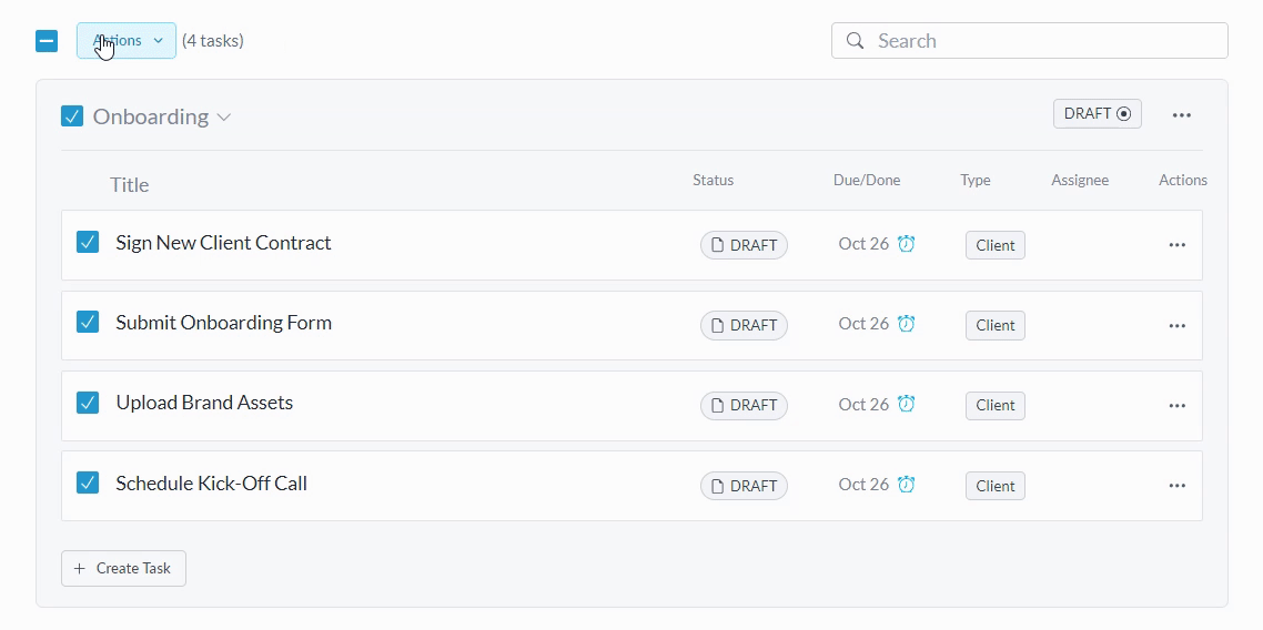 👋 Tip: Want to reduce the number of emails clients receive about tasks you assign? When you send tasks in bulk, clients receive just one notification instead of individual emails.